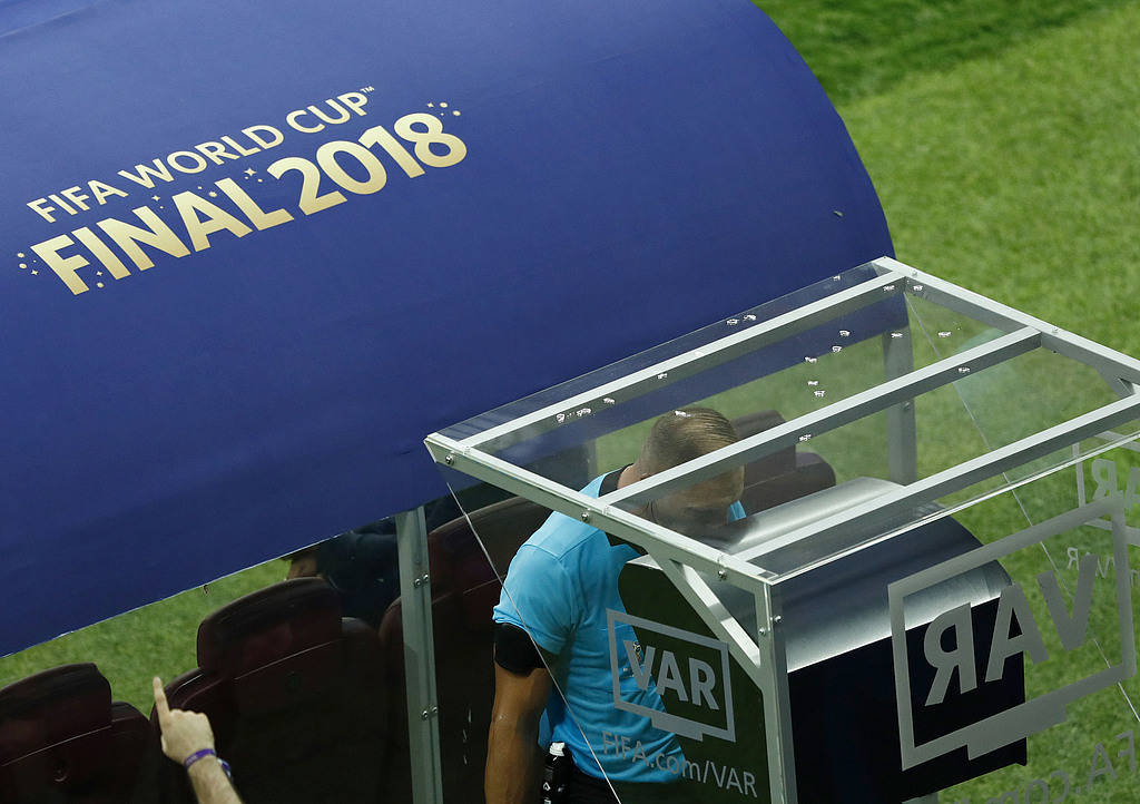 时间来到2018年,国际足联投票通过,在俄罗斯世界杯上采用VAR。VAR主要依靠遍布足球场上的多个摄像机镜头,多机位,多角度捕捉场上的每一个细小动作,当比赛中出现争议判罚或主裁判需要调取比赛录像时,视频助理裁判和技术人员将调出相对应的回放节点,主裁判可以在场边观看回放,从而做出更加公正的比赛判罚。国际足联同时规定,VAR适用于涉及进球、点球、直接红牌和裁判认错球员身份的四种场景下。
